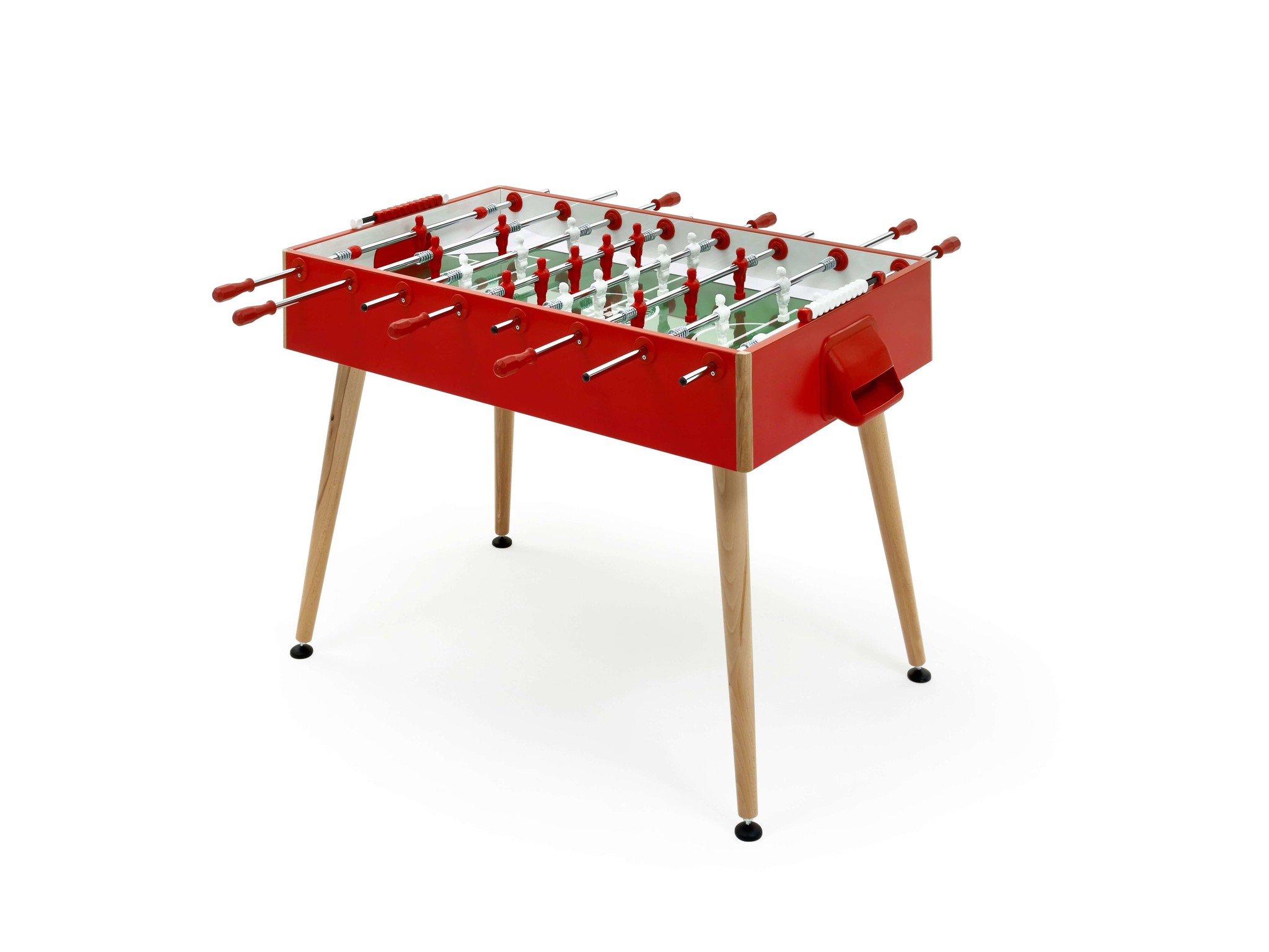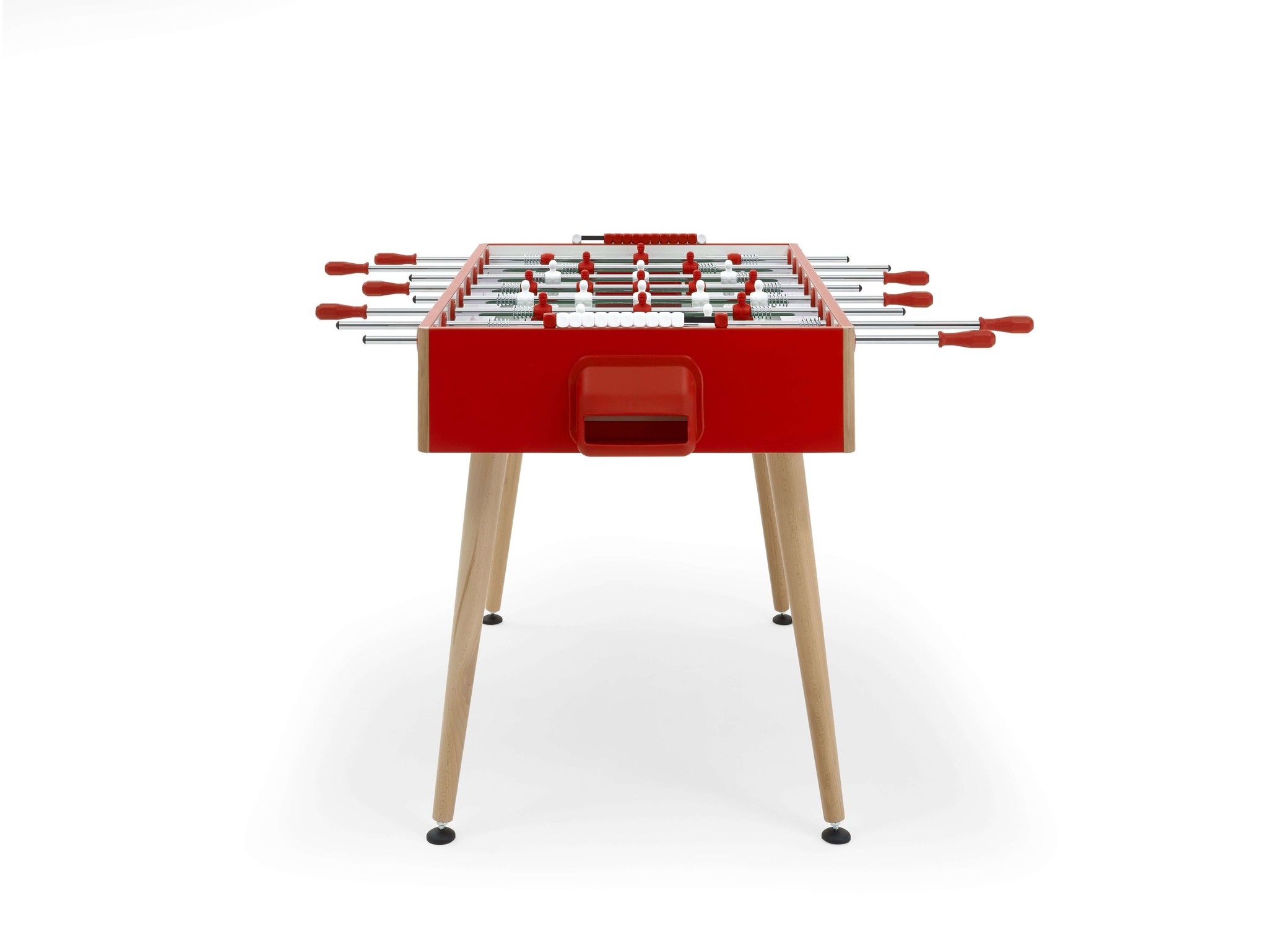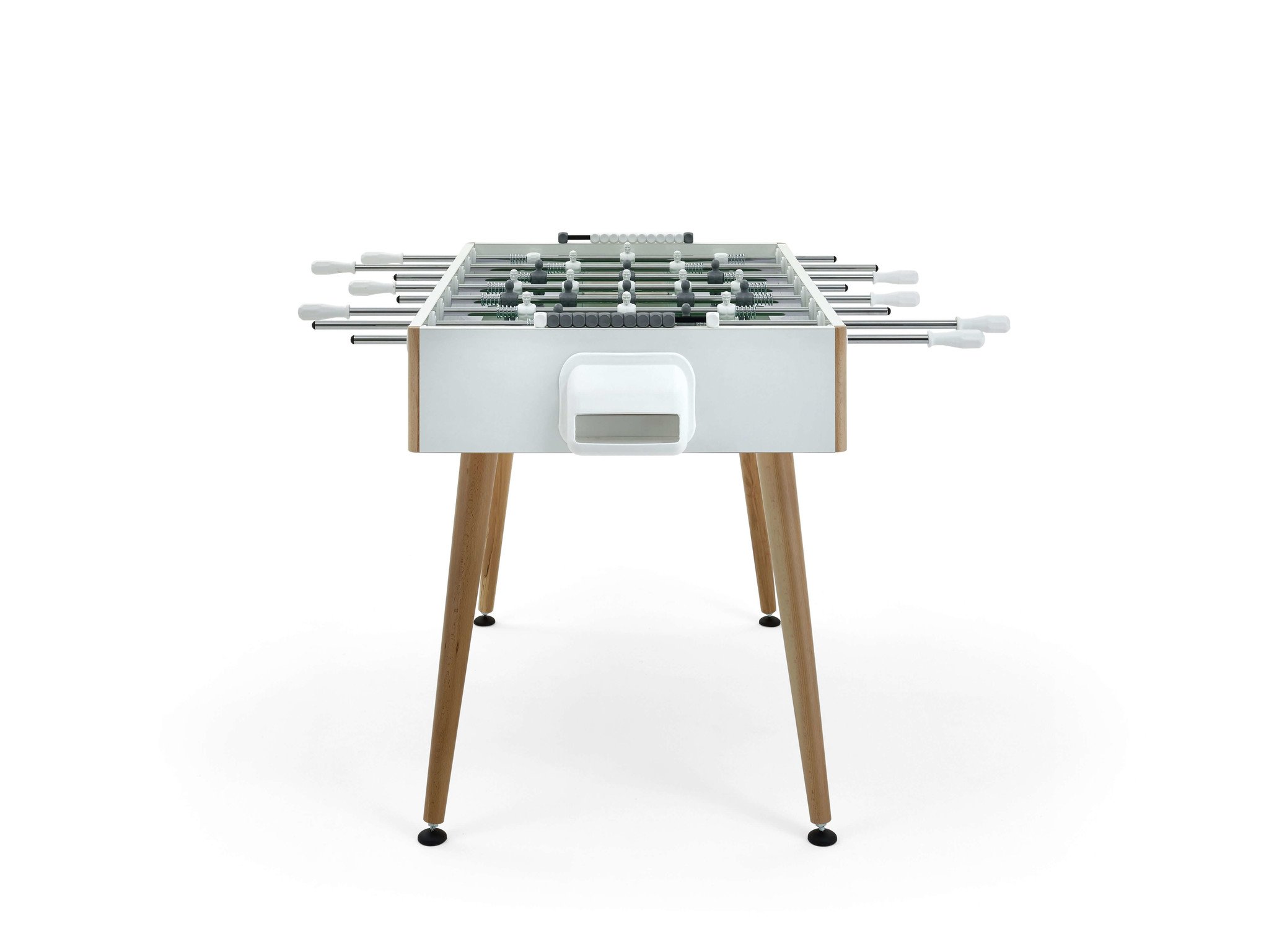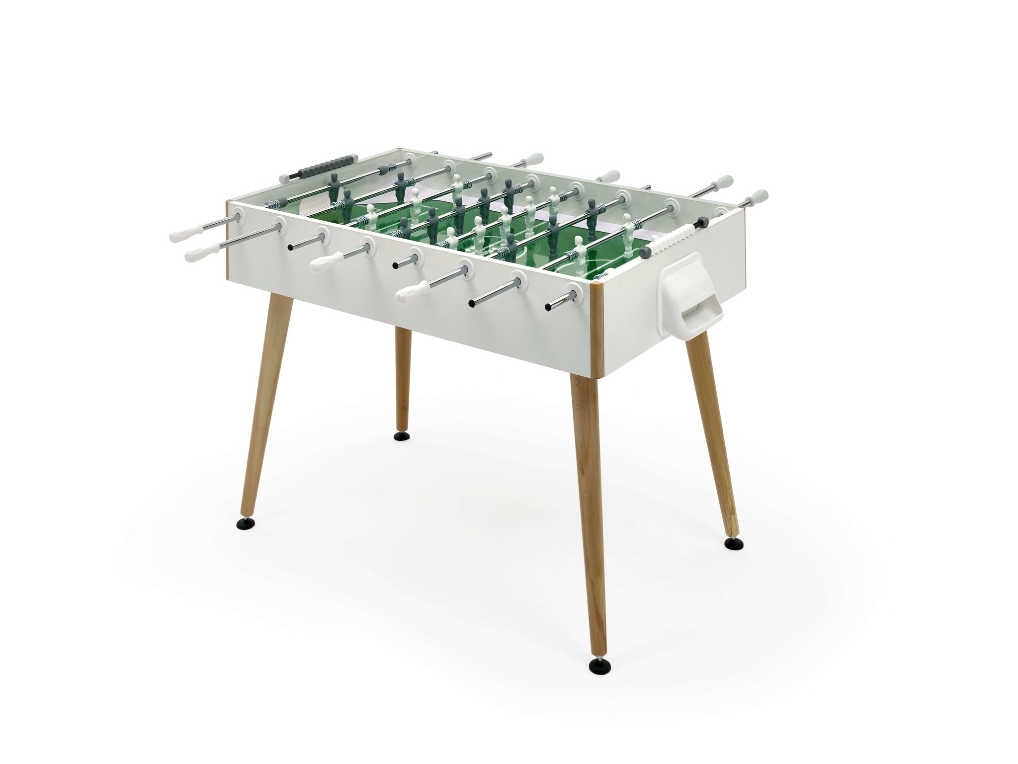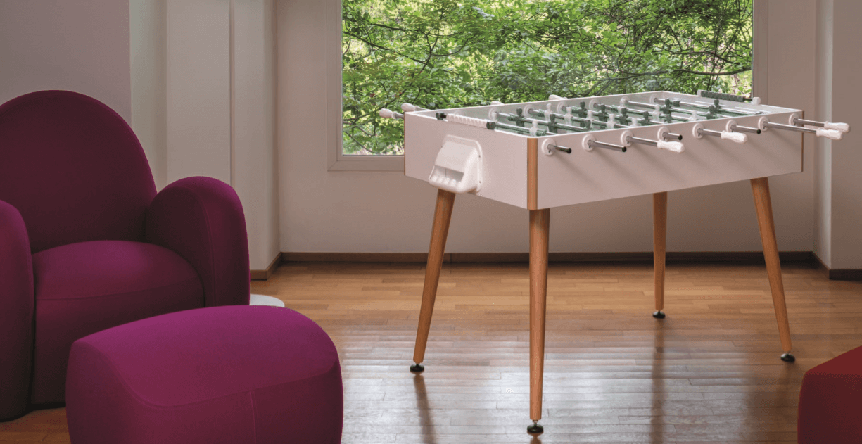 De FAS Flamingo voetbaltafel verbindt spel met Italiaans design. De Flamingo kenmerkt zich door strakke lijnen met toevoeging van fijne details. De vier fraaie houten poten zorgen voor een unieke look, zonder enige stevigheid of stabiliteit te verliezen. Kortom een absolute aanrader voor zowel de fanatieke speler, als gezinnen en kinderen. Daarnaast staat deze tafel prachtig in elk interieur door het Italiaanse top design van Basaglia & Rota Nodari.