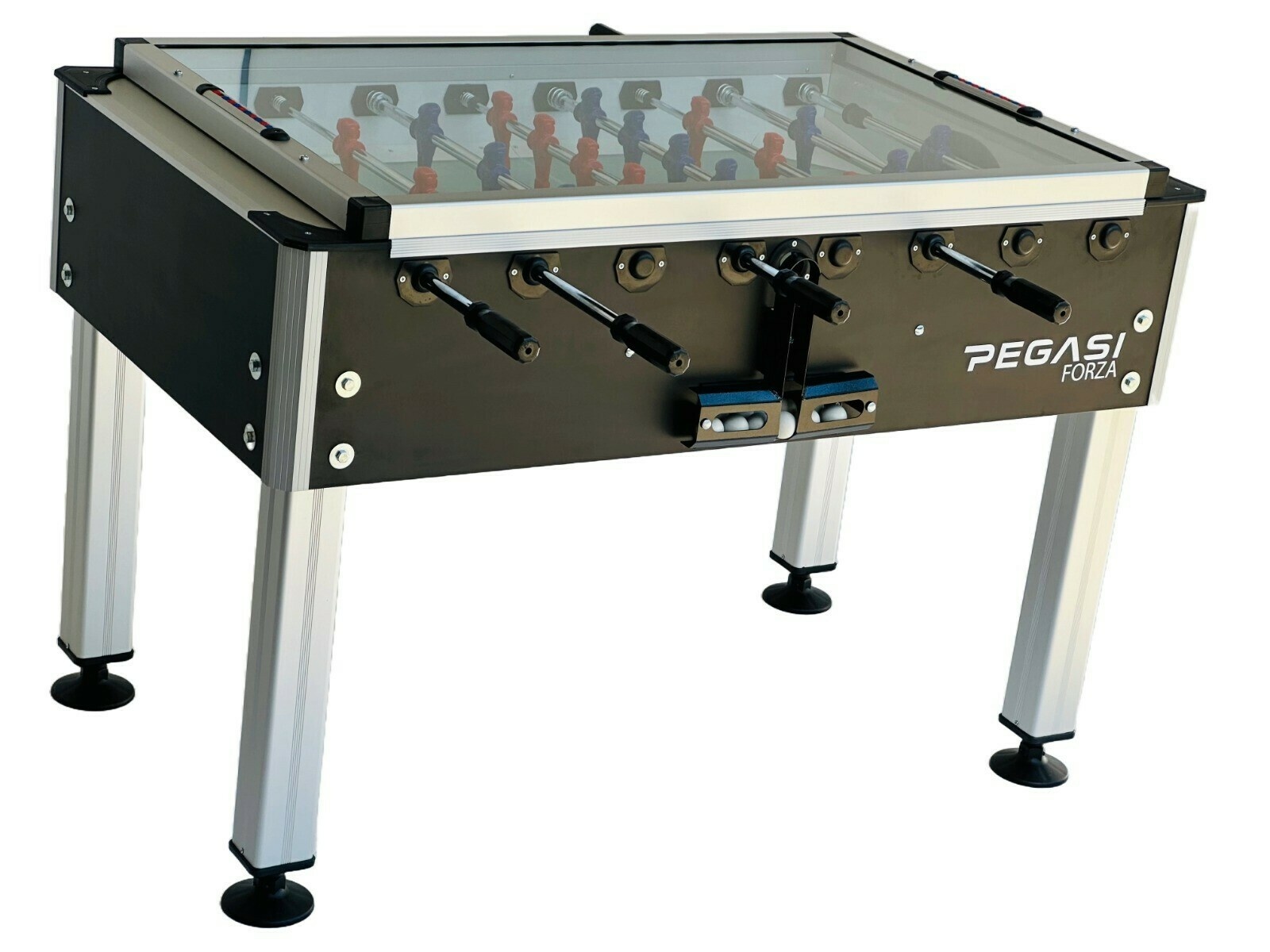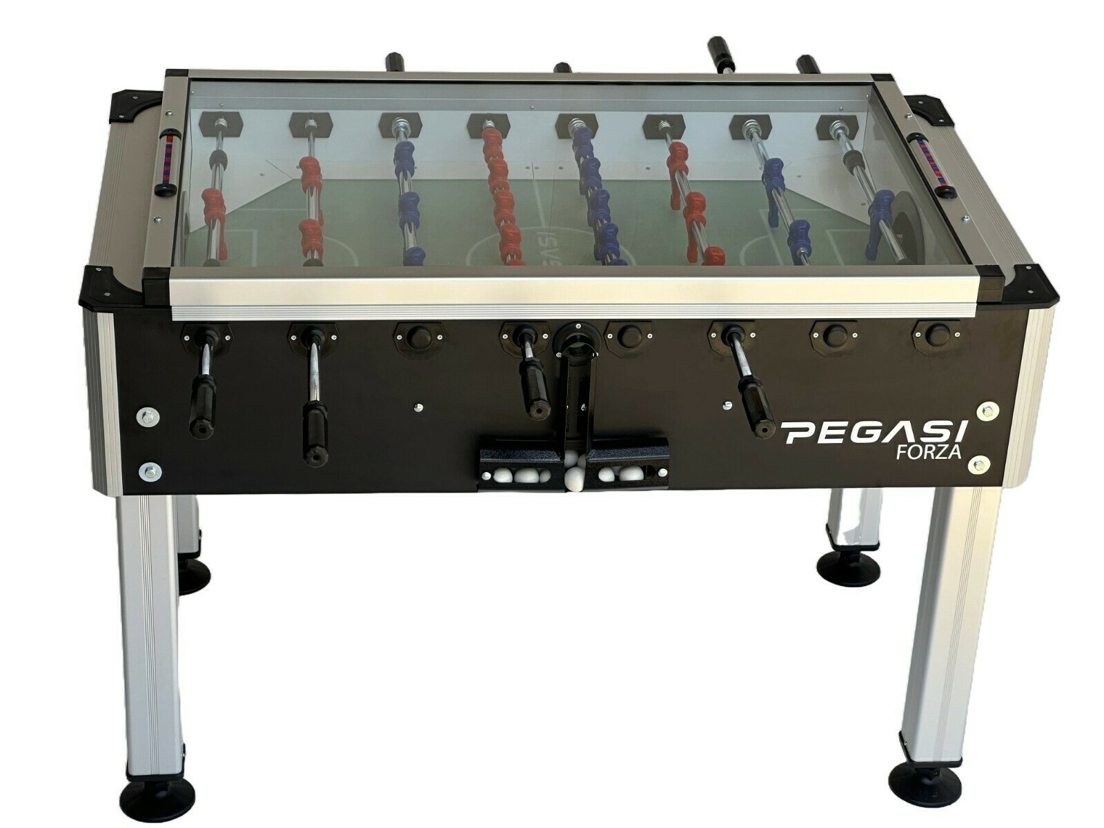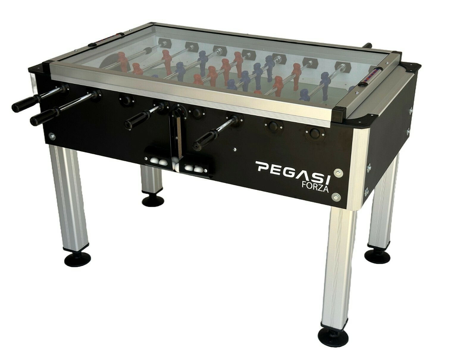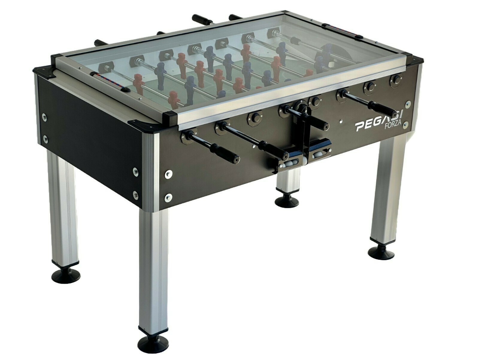 Dit is de Pegasi Forza voetbaltafel met glasplaat. Eén van de drie voetbaltafels uit de Professional line van Pegasi.
