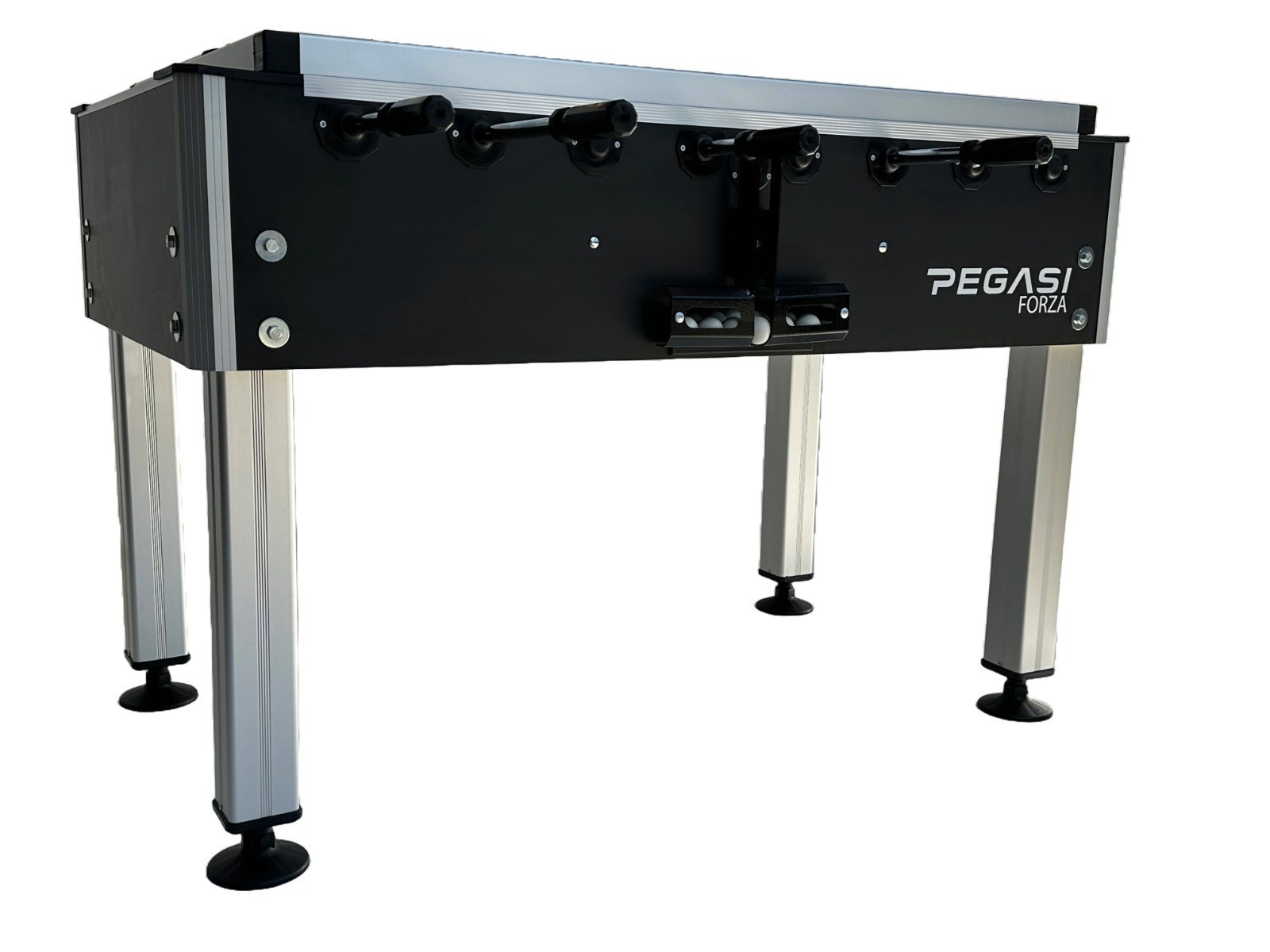 Het kabinet van de voetbaltafel is gemaakt van maar liefst 25mm dik multiplex en de poten zijn geanodiseerde aluminium profielen van 80x80 mm met verstelbare voetjes zodat u de tafel mooi waterpas kunt plaatsen.